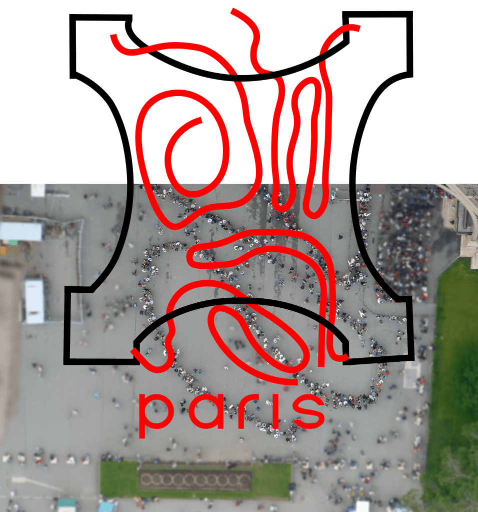 „Queues“ critically and ironically confronts the public with the issue of overtourism in a graphic display.
